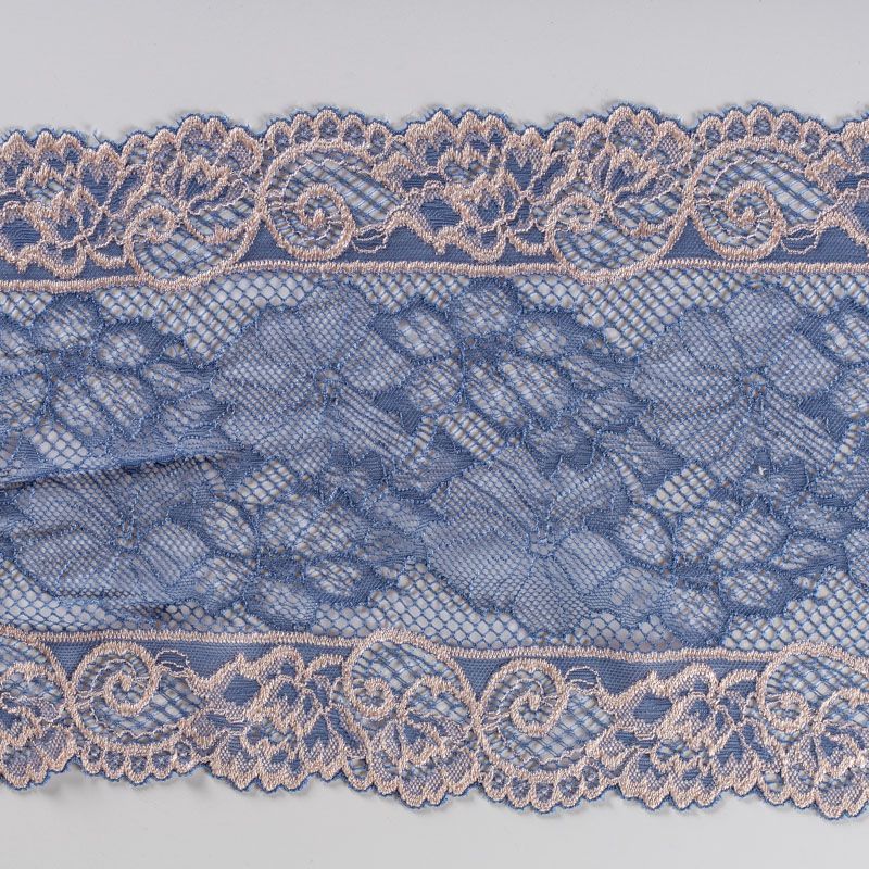 Кружево эластичное 200 мм Ф01-0204 бежево-синий