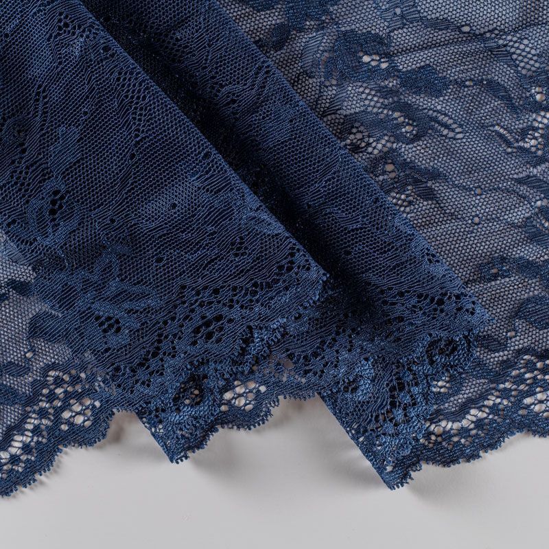 Эластичное кружево сочетает в себе мягкость, прочность и красоту, благодаря своей упругости оно долго не теряет первоначальную форму. Используется для пошива нижнего белья, а так же применяется как отделочный декор в одежде.