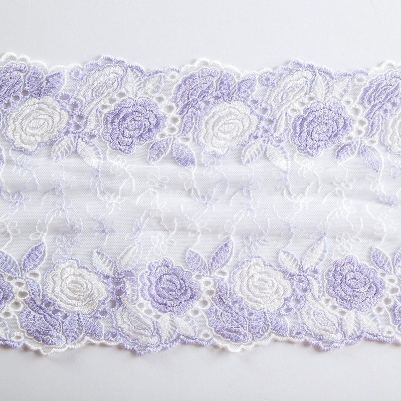 Эластичное кружево сочетает в себе мягкость, прочность и красоту, благодаря своей упругости оно долго не теряет первоначальную форму. Используется для пошива нижнего белья, а так же применяется как отделочный декор в одежде.