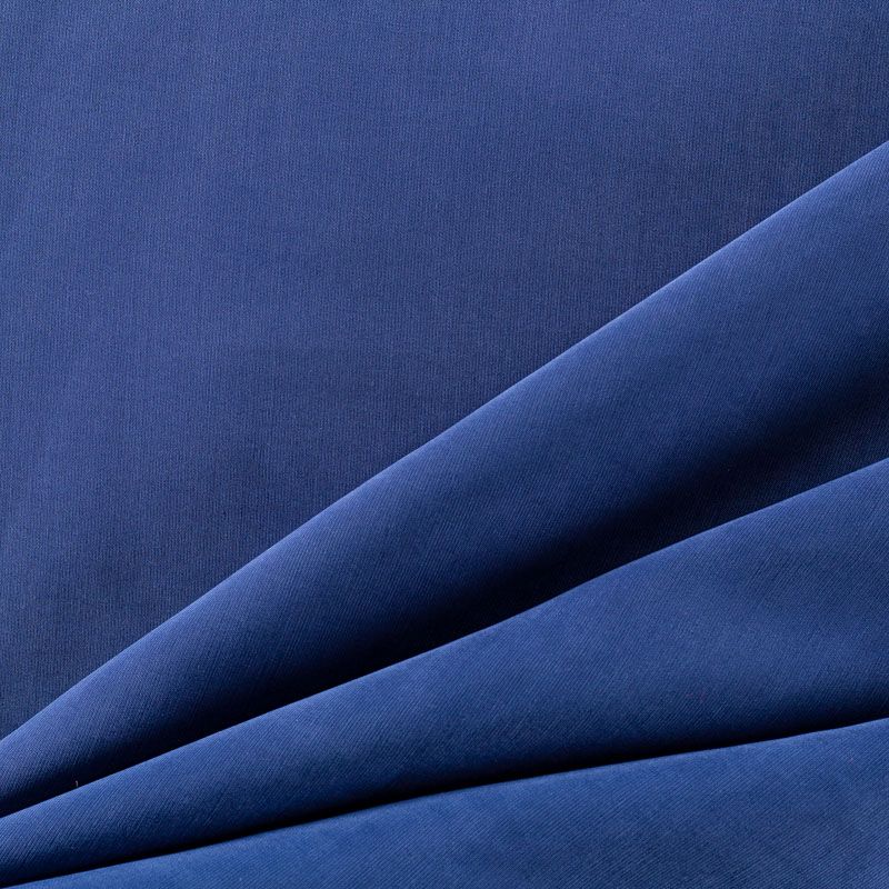 Купро плательно-костюмной плотности припыленного темно-синего оттенка. Ткань мягкая, пластичная, струящаяся, отлично драпируется, не просвечивает. Поверхность ткани бархатистая, похожа на мокрый шелк. Идеально подойдет для платьев свободного силуэта, брюк-палацио, юбок, шорт, туник, платья-рубашки, блузы.