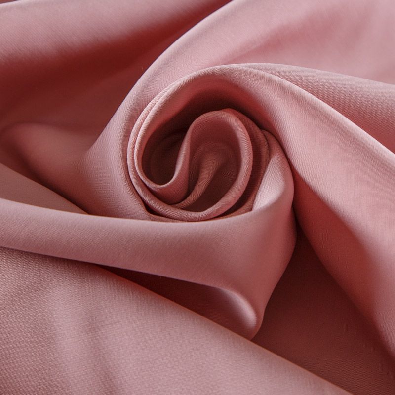 Итальянская купро плательно-костюмной плотности розового оттенка. Ткань мягкая, пластичная, струящаяся, отлично драпируется, не просвечивает. Поверхность ткани бархатистая, похожа на мокрый шелк. Идеально подойдет для платьев свободного силуэта, брюк-палацио, юбок, шорт, туник, платья-рубашки, блузы.