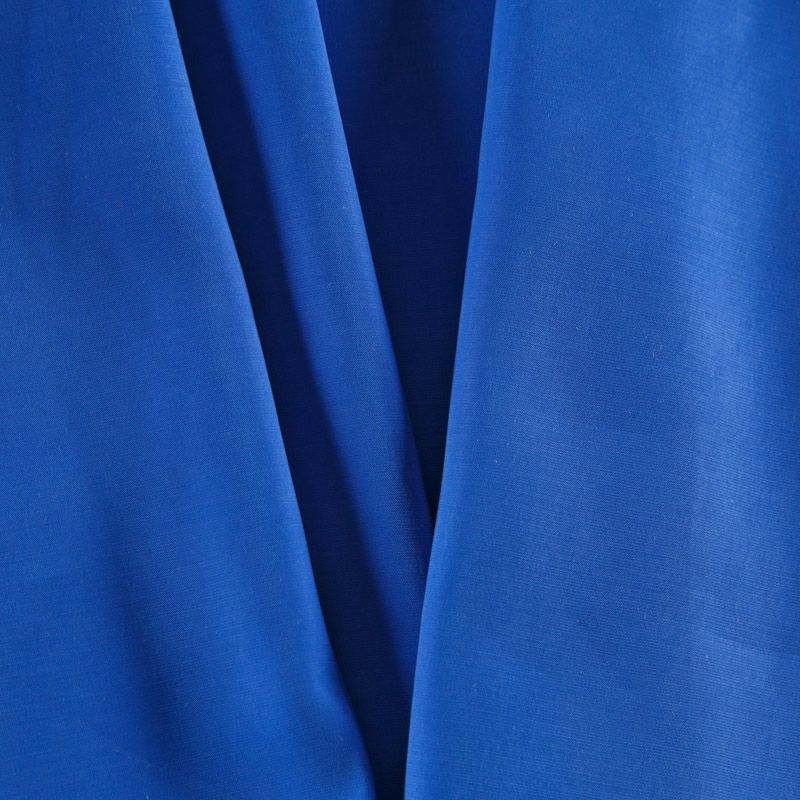 Итальянская купро плательно-костюмной плотности василькового оттенка. Ткань мягкая, пластичная, струящаяся, отлично драпируется, не просвечивает. Поверхность ткани бархатистая, похожа на мокрый шелк. Идеально подойдет для платьев свободного силуэта, брюк-палацио, юбок, шорт, туник, платья-рубашки, блузы.