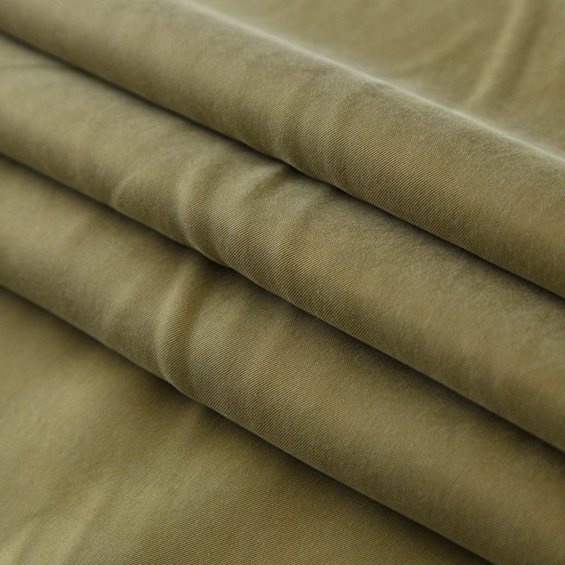 Итальянская купро плательно-костюмной плотности мягкая, пластичная, струящаяся, отлично драпируется, не просвечивает. Поверхность ткани бархатистая, похожа на мокрый шелк. Идеально подойдет для платьев свободного силуэта, брюк-палацио, юбок, шорт, туник, платья-рубашки, блузы.