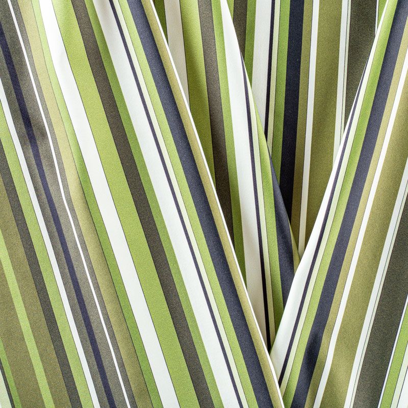 Итальянский бифлекс с разноразмерными полосками в отенках хаки. Поверхность ткани матовая и гладкая. Отлично тянется, одежда из него не сковывает движения. Хорошо впитывает влагу и быстро высыхает, не вызывет аллергии и раздражения. Используется для пошива эстрадных, спортивных костюмов, купальников, боди.