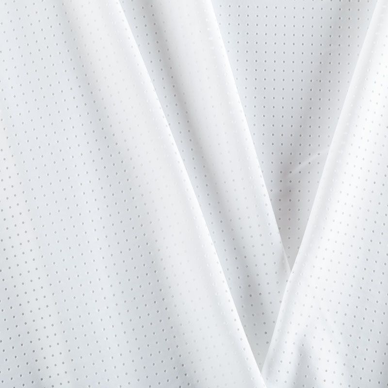 Итальяская качественная, красивая и приятная на ощупь лайкра с перфорацией молочного оттенка. Поверхность ткани матовая, гладкая, шелковистая на ощупь. Идеально облегает фигуру, тянется по двум направлениям, хорошо драпируется, отлично держит форму, устойчива к пилингу, долговечна и гигроскопична. Используется для пошива одежды для танцев, гимнастики, фигурного катания, для велоспорта, легкой атлетики и аэробики, фитнеса и других видов спорта, для купальников, женского белья, театральных, цирковых и эстрадных костюмов.