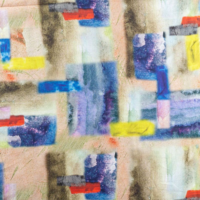 Льняная плательно-рубашечная ткань с добавлением бемерии в бежево-синих оттенках с абстрактным принтом. Материал прочный, с выразительной матовой рельефной поверхностью, полотняным плетением, хорошо держит форму, мягкий на ощупь, пластичный, отлично драпируется. Прекрасно подойдет для пошива летних платьев, сарафанов, юбок, рубашек, брюк и шорт.