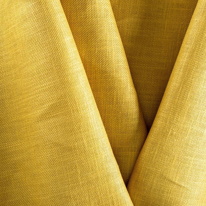 Льняная костюмно-плательная ткань красивого горчичного оттенка. Ткань прочная и плотная, с выразительной матовой рельефной поверхностью и полотняным переплетением, отлично держит форму, комфортная в изделии. Стильный вариант для летних пальто, кардиганов, платьев, сарафанов, юбок, жакетов, брюк или шорт.