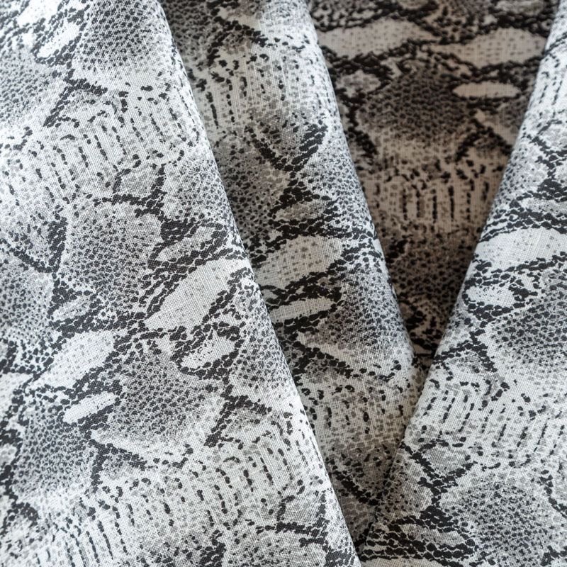 Итальянский плательно-рубашечный лен средней плотности с монохромным анималистическим принтом. Ткань прочная, имеет матовую рельефную поверхность и полотняное переплетение, отлично держит форму, пластичная, комфортная в изделии. Отлично подойдет для пошива для летних костюмов, рубашек, туник, платьев, сарафанов, юбок, жакетов, брюк или шорт.