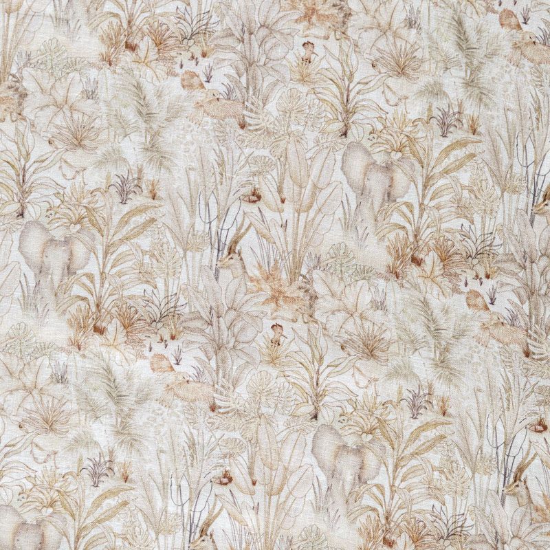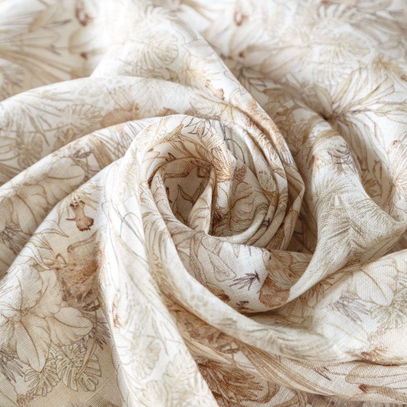 Итальянский плательно-рубашечный лен средней плотности с растительным принтом в бежево-коричневых оттенках. Ткань прочная, имеет матовую рельефную поверхность и полотняное переплетение, отлично держит форму, пластичная, комфортная в изделии. Отлично подойдет для пошива для летних костюмов, рубашек, туник, платьев, сарафанов, юбок, жакетов, брюк или шорт.
