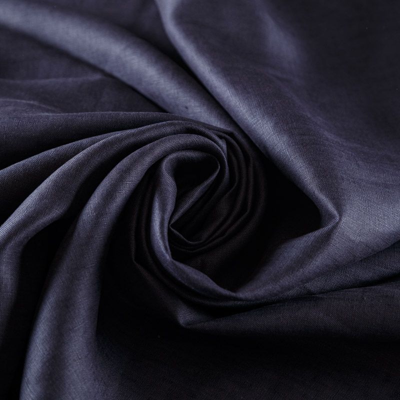Итальянский костюмно-плательный лен глубокого синего оттенка. Ткань прочная, имееет на ощупь приятную, гладкую поверхность, а визуально - выраженный рельеф и полотняное переплетение, держит форму, пластичная. Подойдет для пошива костюмов, брюк, шорт, юбок, платьев, рубашек, сарафанов, топов, комбинезонов, жакетов, кардиганов.