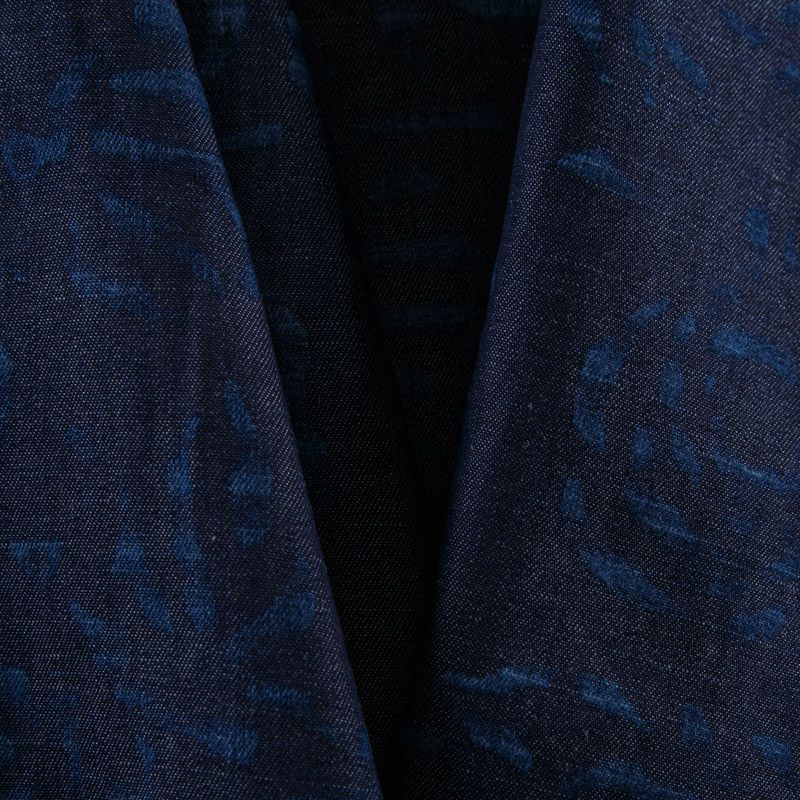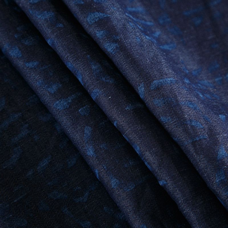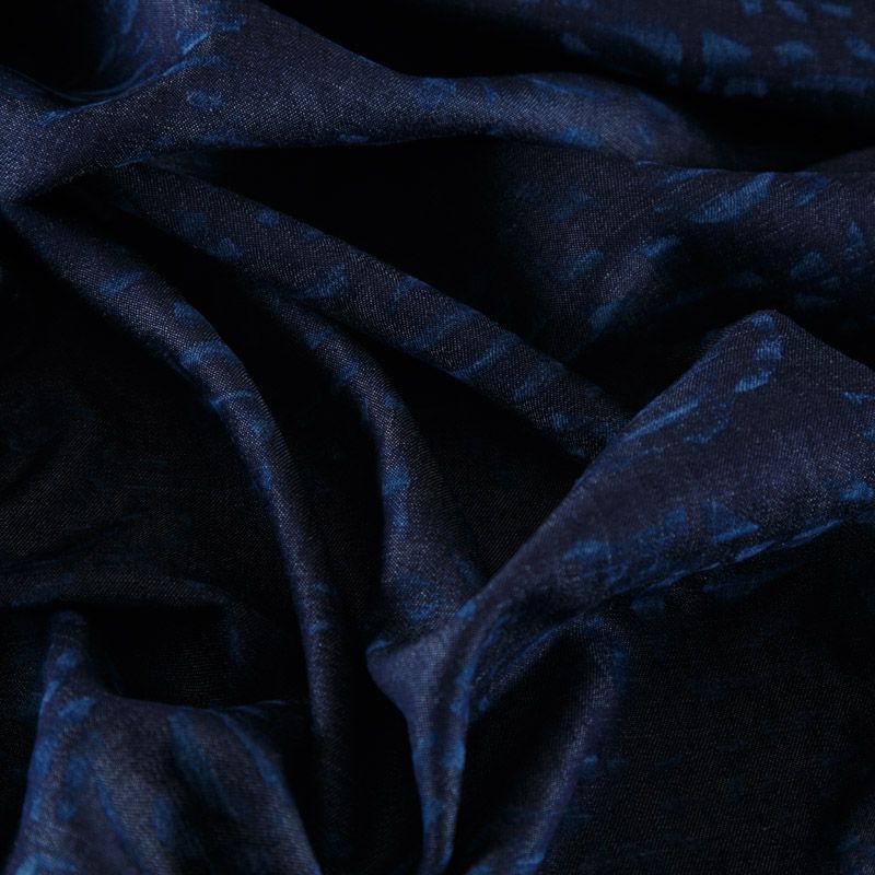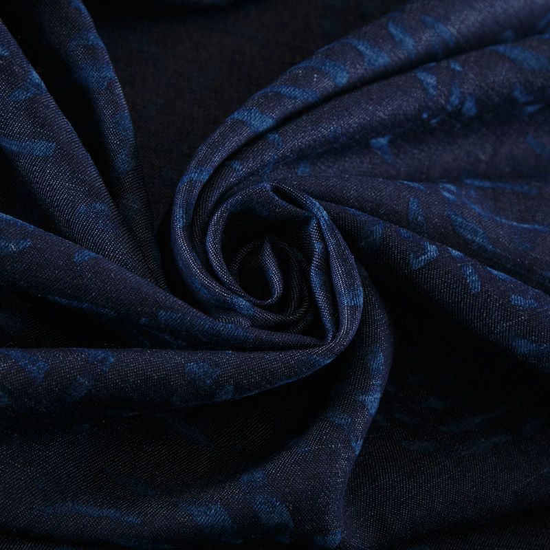 Лен натуральный 035-12097 синий джинс принтованный