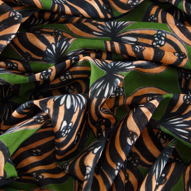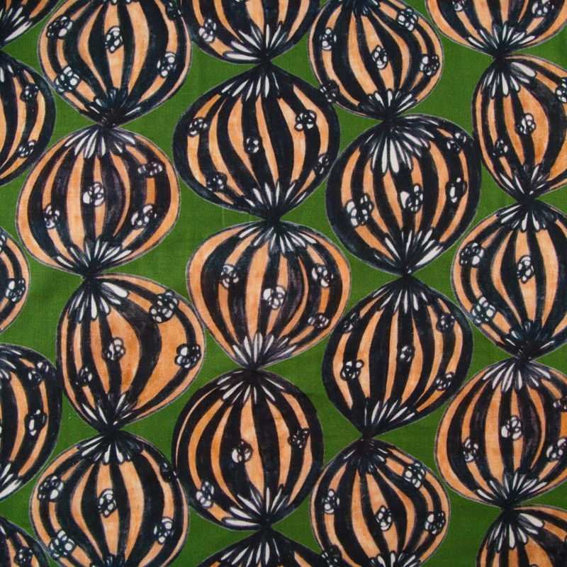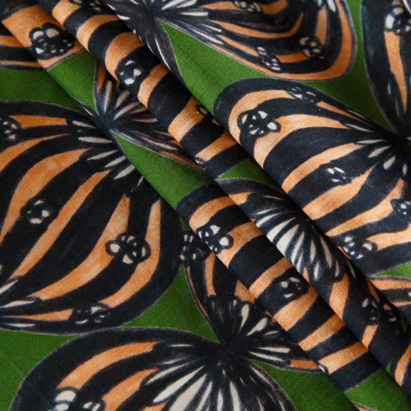 Лен натуральный 035-12336 травяной зеленый принтованный