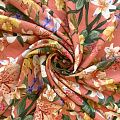 Лен натуральный К36-078 коралловый принтованный