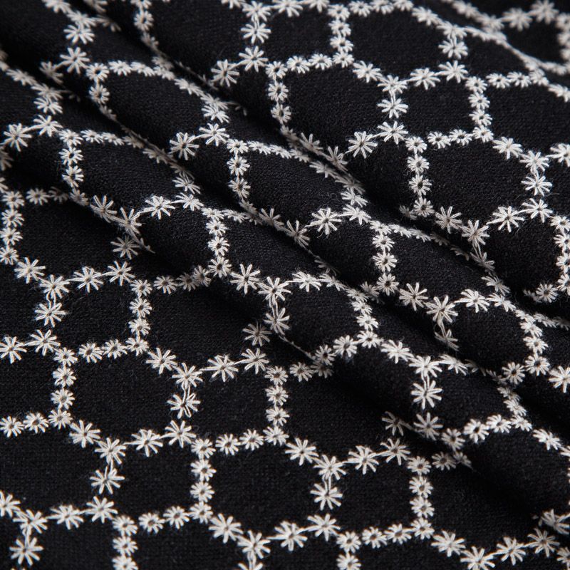 Итальянский лен костюмно-плательной плотности с изыщной вышивкой по всему полотну. Ткань держит форму, не тянется, не просвечивает, поверхность имеет характерное полотняное плетение, матовая. Подойдет для пошива летнего костюма, платья, рубашки, топа, шорт.
