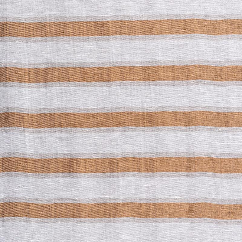 Итальянский плательно-рубашечный лен с добавлением вискозы, средней плотности, в полоску бежевых оттенков. Рисунок расположен перпердикулярно кромке. Ткань прочная, имееет выразительную матовую рельефную поверхность и полотняное переплетение, хорошо держит форму. Подойдет для пошива весенне-летних костюмов, платьев, брюк, шорт, топов, сарафанов.