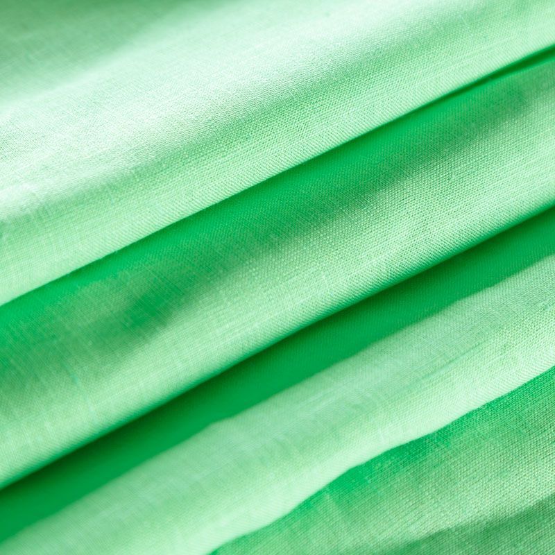 Итальянский костюмно-плательный лен с добавлением вискозы в ярком зеленом оттенке. Ткань прочная, имееет на ощупь приятную, гладкую поверхность, а визуально - выраженный рельеф и полотняное переплетение, держит форму, пластичная. Подойдет для пошива костюмов, брюк, шорт, юбок, платьев, сарафанов, топов, комбинезонов, жакетов, кардиганов.
