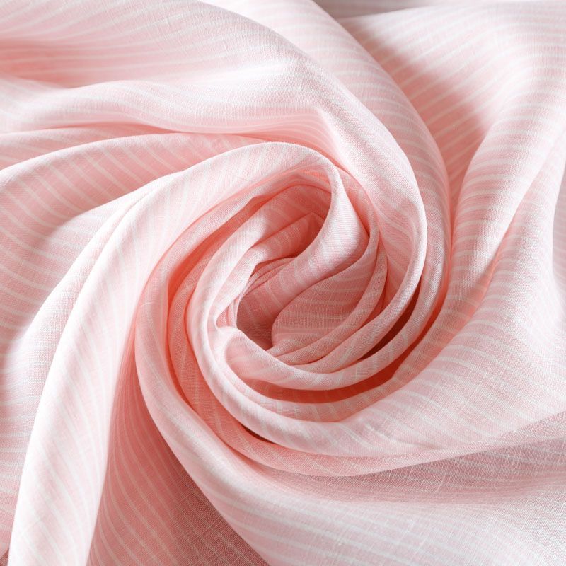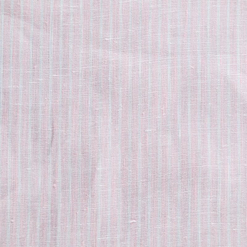 Итальянский костюмно-плательный лен с добавлением вискозы в вертикальную тонкую полоску в розовом оттенке. Ткань прочная, имееет на ощупь приятную, гладкую поверхность, а визуально - выраженный рельеф и полотняное переплетение, держит форму, пластичная. Подойдет для пошива костюмов, брюк, шорт, юбок, платьев, сарафанов, топов, комбинезонов, жакетов, кардиганов.
