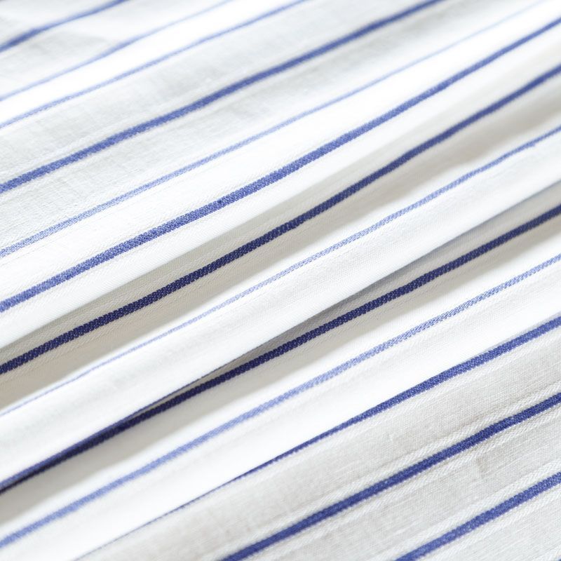 Итальянский костюмно-плательный лен с добавлением вискозы в горизонтальную жаккардовую полоску цвета деним. Ткань прочная, имееет на ощупь приятную, гладкую поверхность, а визуально - выраженный рельеф и полотняное переплетение, держит форму, пластичная. Подойдет для пошива костюмов, брюк, шорт, юбок, платьев, сарафанов, топов, комбинезонов, жакетов, кардиганов.
