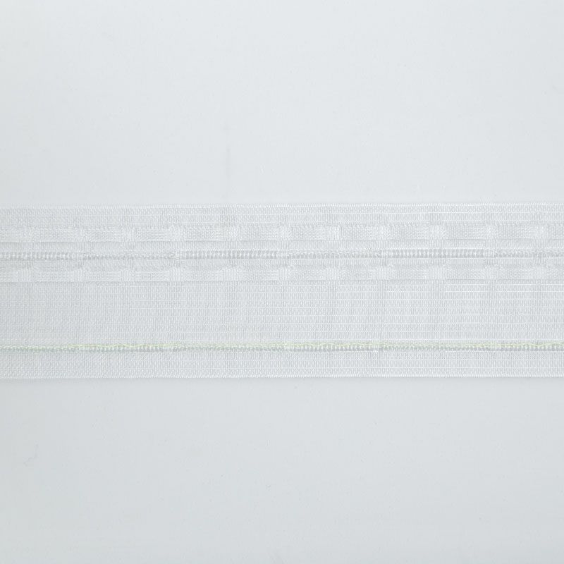 Шторная лента полностью прозрачная для тюлей и легких портьерных тканей c вафельной складкой. Сокращение - 1:2,5, раппорт - 6 см, 2 ряда кармашков, крепление - крючки.
