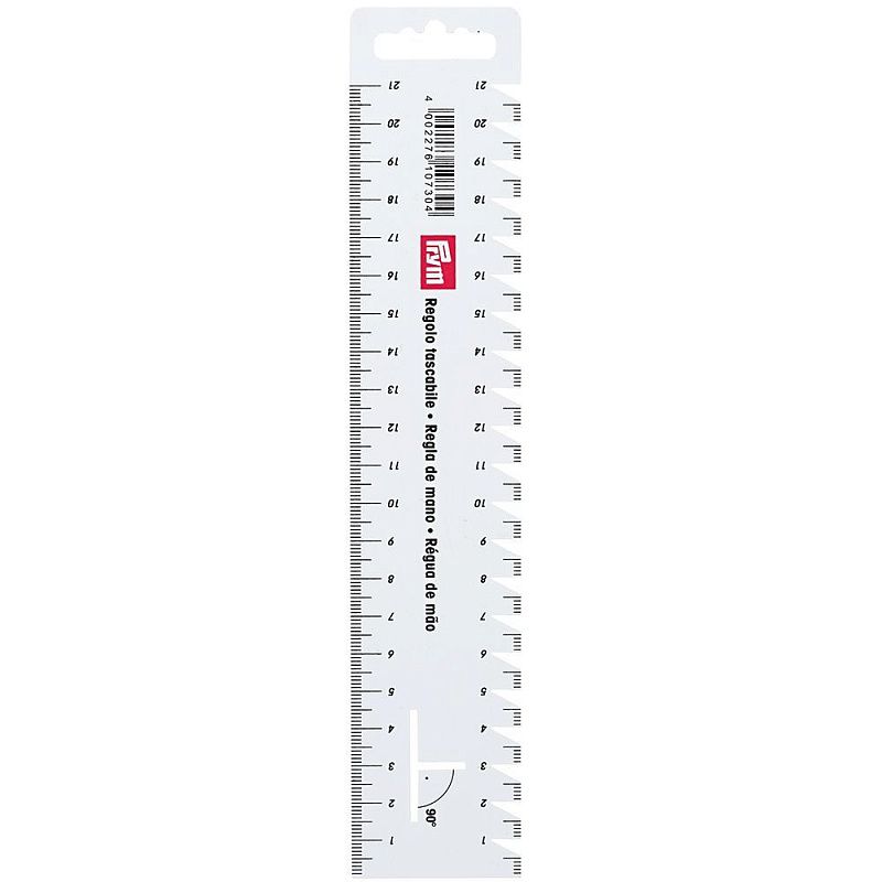 Небольшие линейки для разметки и измерения от Prym очень хорошо подходят особенно для непосредственной работы на швейной машине. Выполненные из гибкого пластика они легкие и одновременно прочные. Они имеют с обеих сторон абсолютно точную сантиметровую шкалу с контролем длины стежка и помощью в разметке угла в 90°. Благодаря своей гибкости линейка для разметки и измерения идеально прилегает к тканям и выкройкам и позволяет выполнять точное измерение, а благодаря дополнительным насечкам – точную разметку.