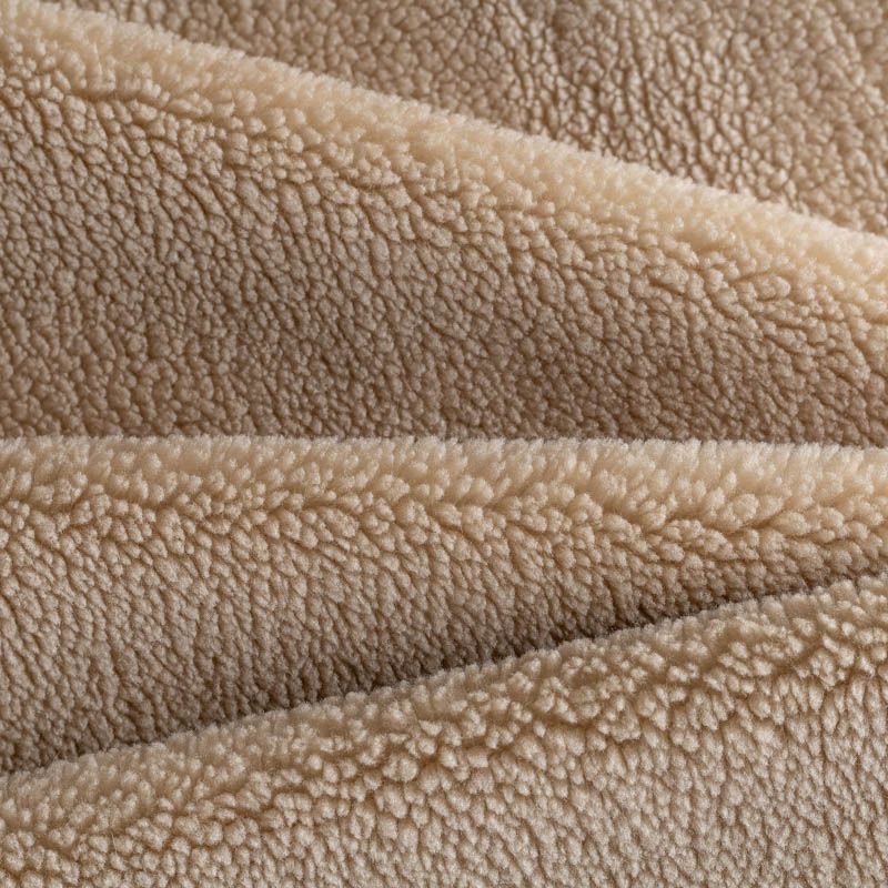 Мех с низким ворсом, имитирующий овчину на синтетической основе. Мягкий, плотный, пластичный. Ворс матовый, без блеска, имеет слабо выраженное направление. Идеально подойдет для пошива шубки, мехового пальто, куртки, бомбера или отделки.