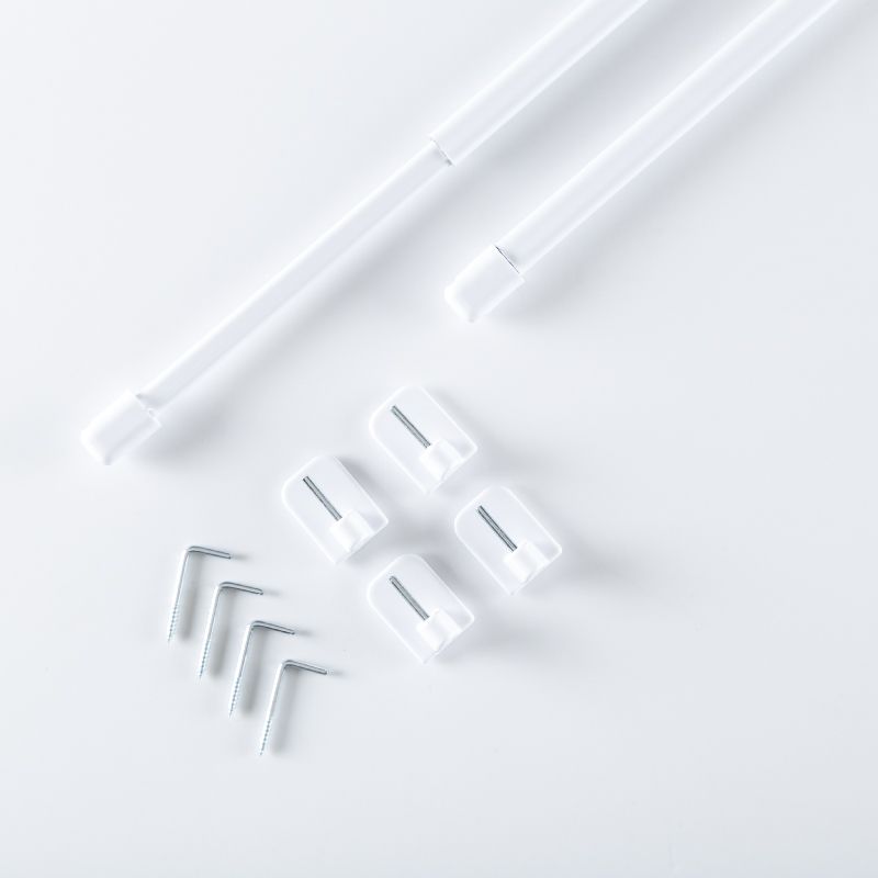 Облегченные карнизы "кафе" предназначены для зашторивания середины окна. Они отличаются небольшим диаметром труб: 12/10 мм, миниатюрными кронштейнами и телескопическим механизмом регулировки размера трубы. Все эти качества делают  эти изделия незаменимыми в оформлении нестандартных небольших окон, дверных проемов и ниш, а также в создании сложных композиций с их использованием, например, в качестве декоративных утяжелителей панельных штор. Миникарниз обладает кронштейном, который можно приклеивать к раме или створке окна. Это самый легкий из металлических телескопических карнизов. Комплектация: труба телескопическая с наконечниками - 2 шт., кронштейны самоклеящиеся - 4 шт., монтажные элементы - 4 шт. Величина выноса от стены - 10 мм.