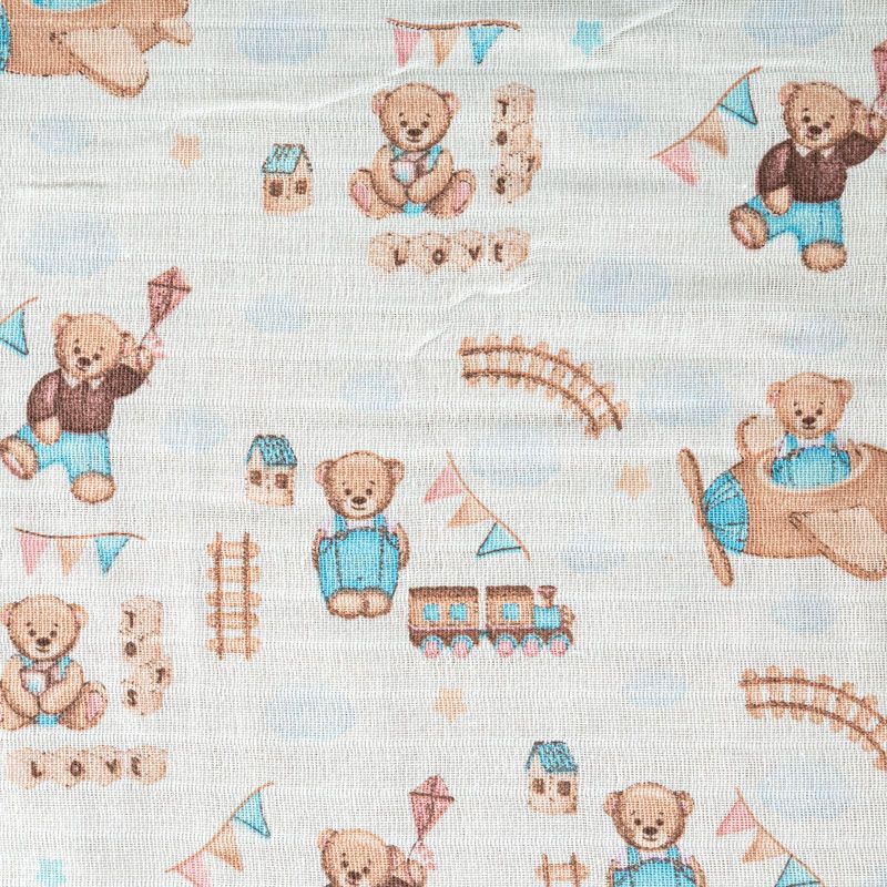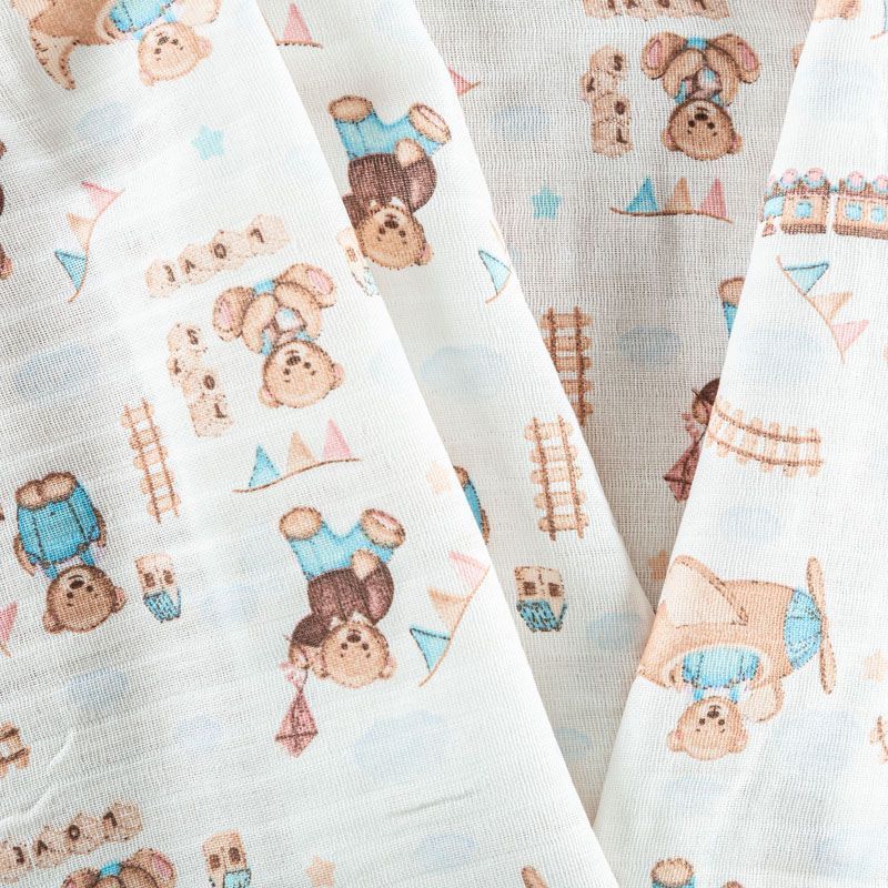 Хлопковый муслин полотняного переплетения, в котором нити утка и основы перекрывают друг друга на больших промежутках, поэтому ткань очень мягкая, легкая, частично прозрачная. Муслин используется для пошива подгузников, пелёнок, комплектов постельного белья для взрослых и детей, занавесок и пологов для детских кроваток, а также одежды.