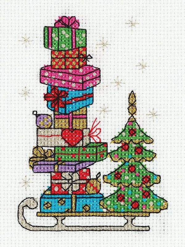 Набор для вышивания Klart 10,5х14 см 8-357 Сани с подарками