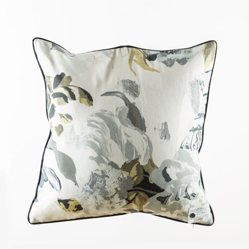 Оригинальная дизайнерская наволочка на подушку 45х45 см. Лицевая сторона выполнена из портьерной ткани в серо-голубых оттенках с акварельным цветочным принтом. Обратная сторона - экокожа светло-серого цвета. Наволочка декорирована черным лакированным кантом. Потайная молния расположена в нижнем шве. Декоративные подушки сделают акцет на цветовой гамме Вашего помещения, подчеркнут особенности интерьерного стиля или тематику оформления. Внимание! Подушка-вкладыш приобретается отдельно.