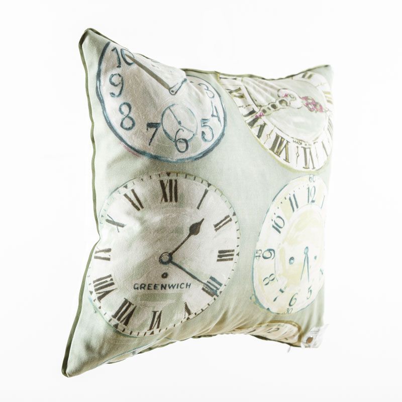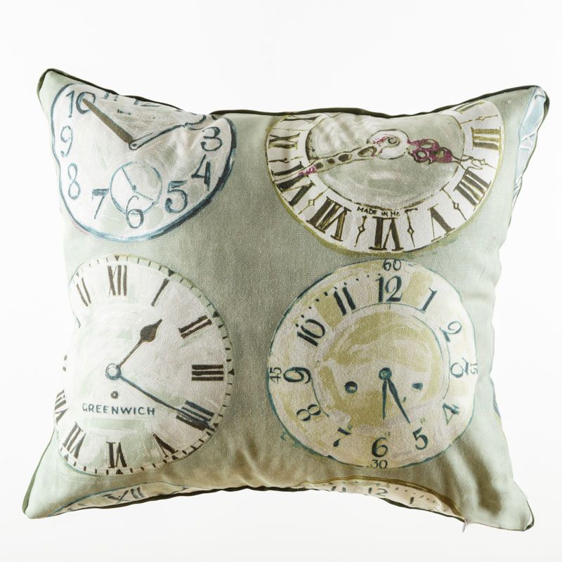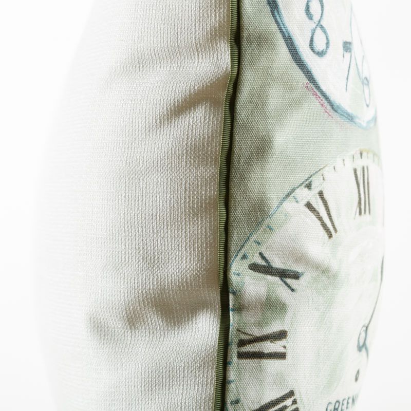 Оригинальная дизайнерская наволочка на подушку 50х50 см. Лицевая сторона выполнена из портьерной ткани с принтом "Часы" в оливково-зеленых оттенках. Обратная сторона - фактурная ткань молочного цвета. Наволочка декорирована репсовым кантом в тон рисунка. Потайная молния расположена в нижнем шве. Декоративные подушки сделают акцет на цветовой гамме Вашего помещения, подчеркнут особенности интерьерного стиля или тематику оформления. Внимание! Подушка-вкладыш приобретается отдельно.