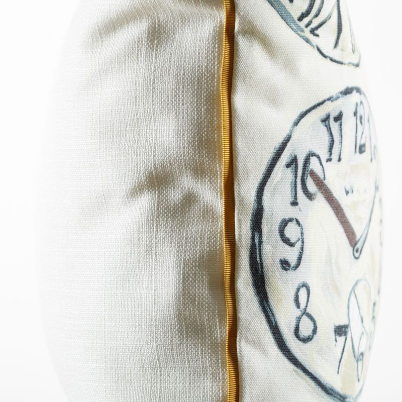 Оригинальная дизайнерская наволочка на подушку 50х50 см. Лицевая сторона выполнена из портьерной ткани с принтом "Часы" в желтых оттенках. Обратная сторона - фактурная ткань молочного цвета. Наволочка декорирована репсовым кантом в тон рисунка. Потайная молния расположена в нижнем шве. Декоративные подушки сделают акцет на цветовой гамме Вашего помещения, подчеркнут особенности интерьерного стиля или тематику оформления. Внимание! Подушка-вкладыш приобретается отдельно.