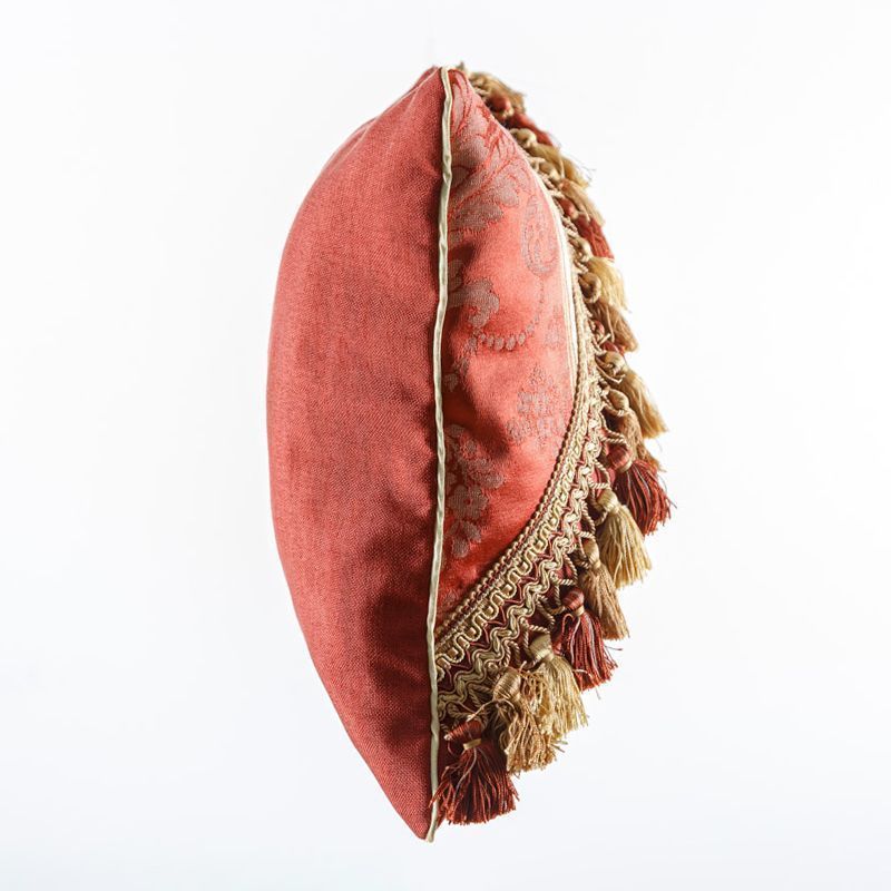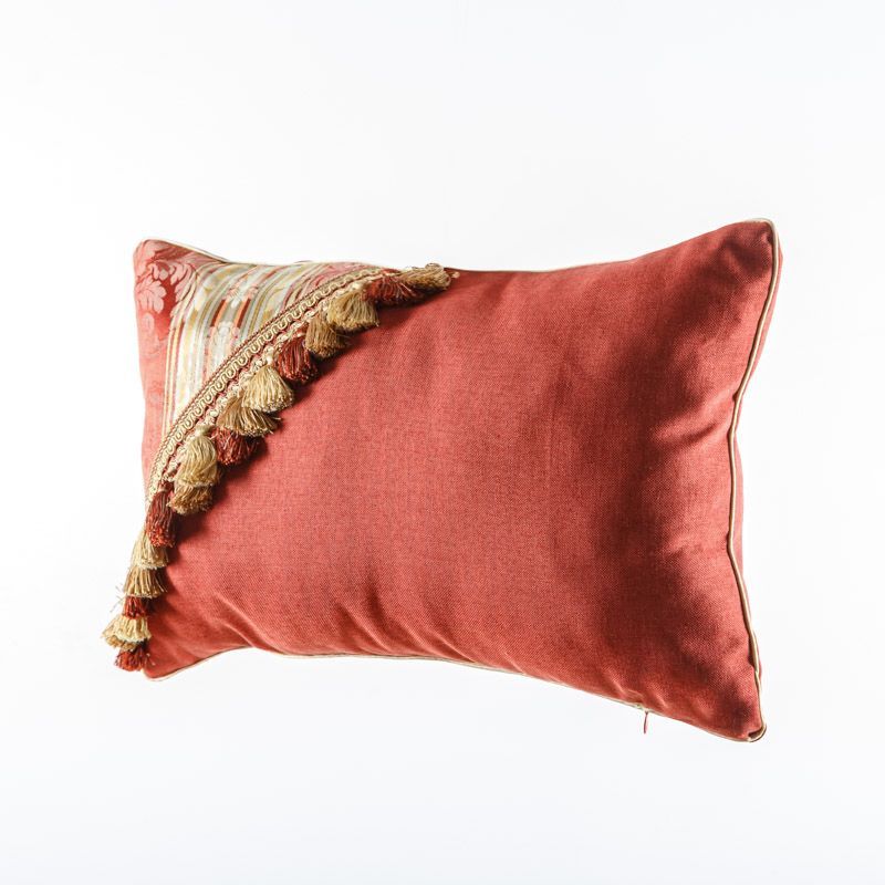 Оригинальная дизайнерская наволочка на подушку 60х40 см. Выполнена из жаккарда и льна и декорирована тесьмой, круглым кантом и бахромой. Потайная молния расположена в нижнем шве. Декоративные подушки сделают акцет на цветовой гамме Вашего помещения, подчеркнут особенности интерьерного стиля или тематику оформления. Внимание! Подушка-вкладыш или синтепон приобретаются отдельно.