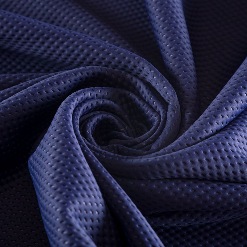 Плотное перфорированное полотно темно-синего оттенка, не тяжелое, гибкое, великолепно держит форму и хорошо тянется. Прочное, практичное, долговечное, совершенно не мнется. Отлично сохраняет тепло. Подойдет для пошива пальто, жакетов, курток, жилетов, также используется для спортивной и медицинской одежды.