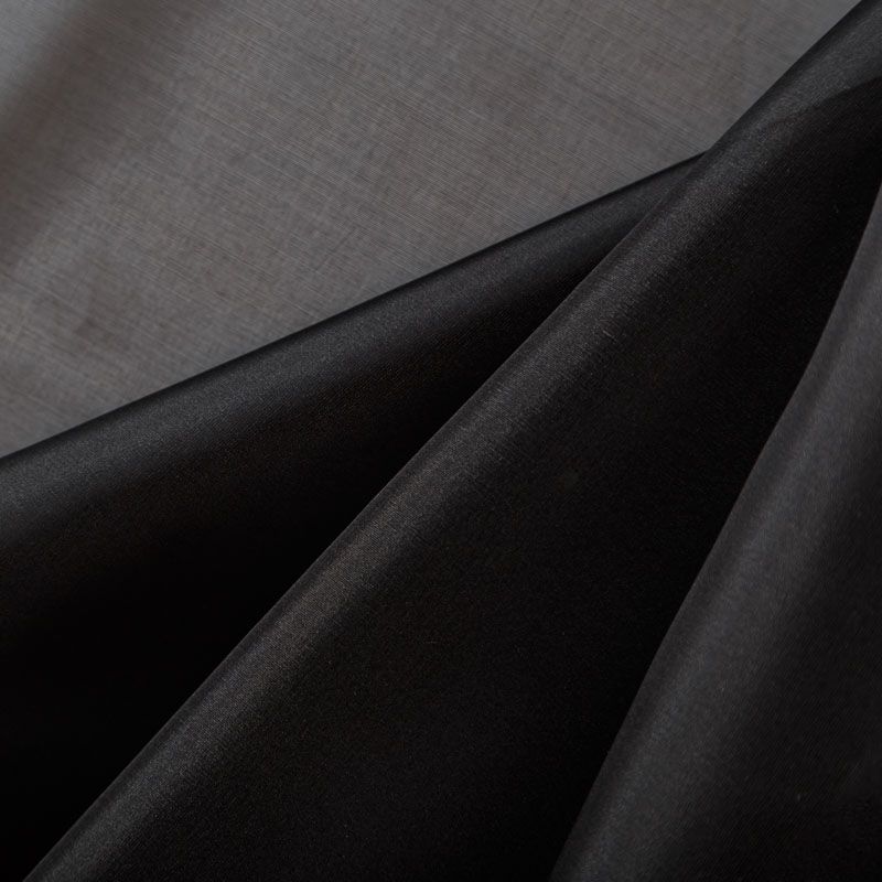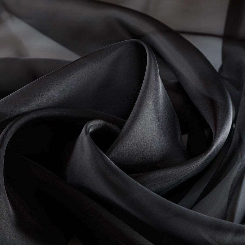 Шелковая невесомая органза с искрящейся поверхностью черного цвета. Ткань легкая, тонкая, пластичная, хорошо драпируется, просвечивает, отлично держит форму. Подойдет на блузку, платье, тунику или юбку на подкладе.