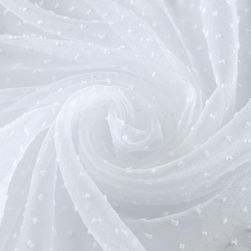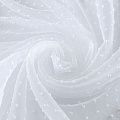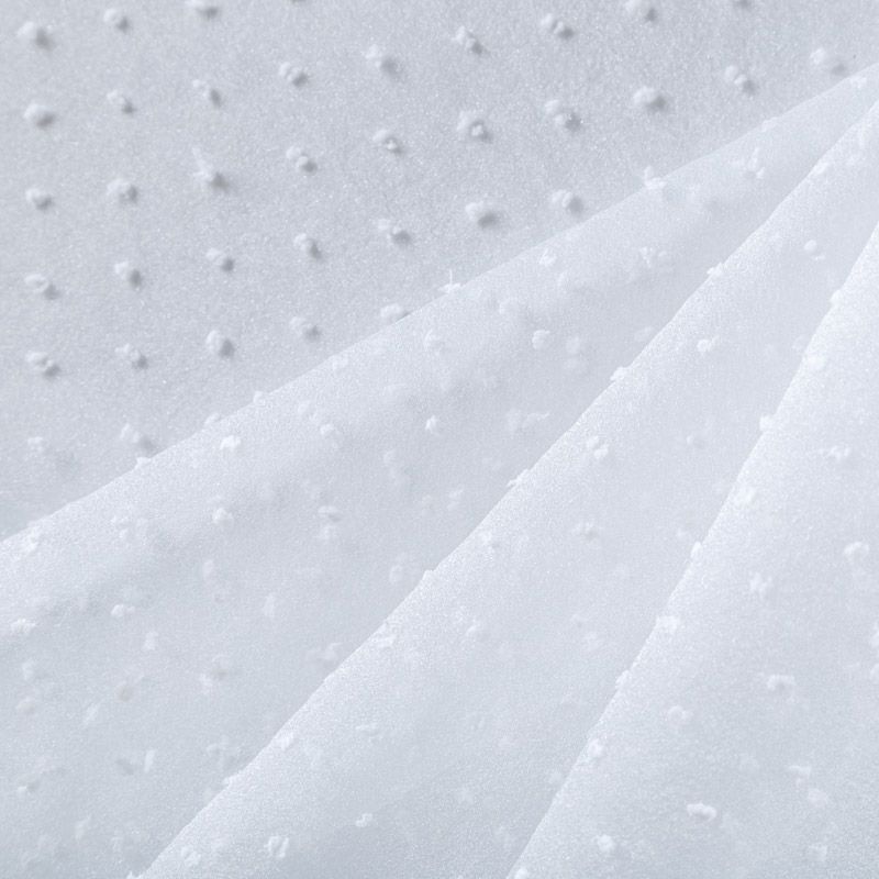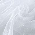Легчайший, изящный, воздушнный и прозрачный материал с благородной переливчатой поверхностью. Прекрасно держит форму в заложеных складках. На лицевой стороне объемные декоративные элементы из флока диаметром 0.5 см. Подойдет для создания в изделии декоративных деталей, новогодних костюмов, нарядных платьев, блузок.