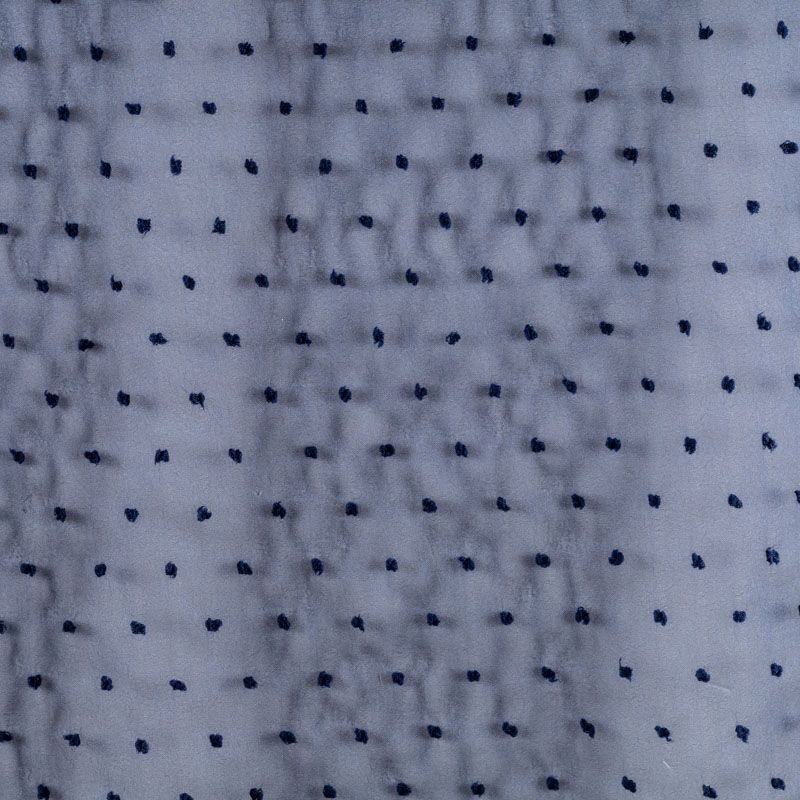 Легчайший, изящный, воздушнный и прозрачный материал с благородной переливчатой поверхностью. Прекрасно держит форму в заложеных складках. На лицевой стороне объемные декоративные элементы из флока диаметром 0.5 см. Подойдет для создания в изделии декоративных деталей, новогодних костюмов, нарядных платьев, блузок.