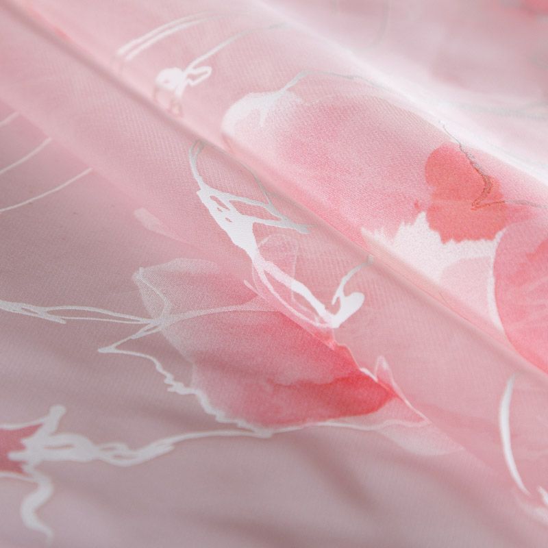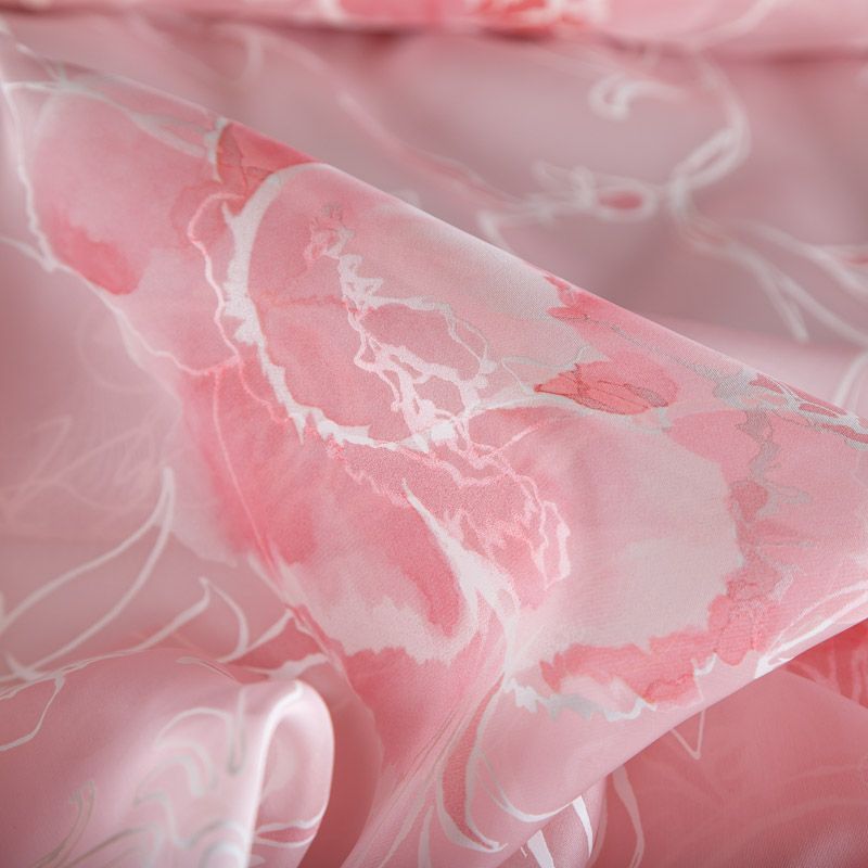 Органза шелковая 039-16957 нежно-розовый принтованный