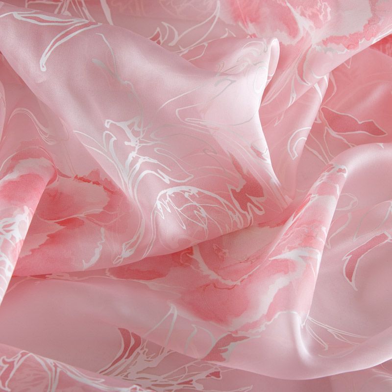Органза шелковая 039-16957 нежно-розовый принтованный в Уфе