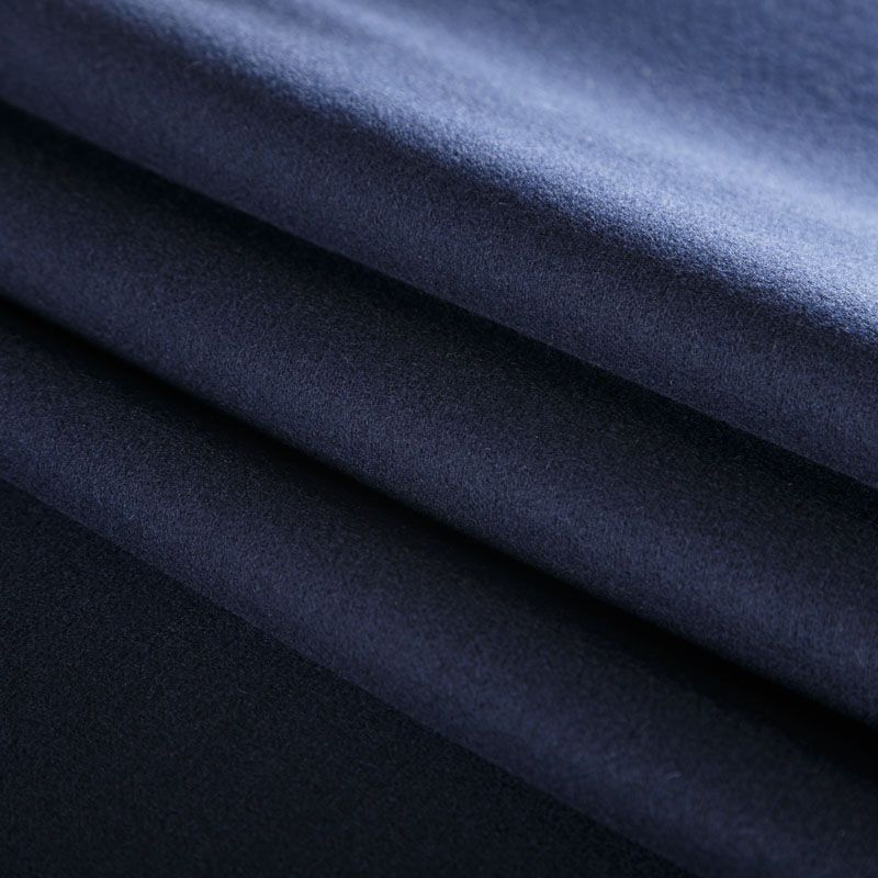 Плотный итальянский шерстяной пальтовый трикотаж темно-синего оттенка. Ткань очень приятная на ощупь, мягкая, пластичная, теплая и уютная. Прекрасно подойдет для  пошива легких пальто, пальто на подкладе, теплых жакетов, курток, кардиганов, юбок или шорт.