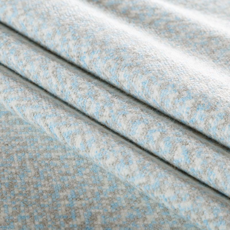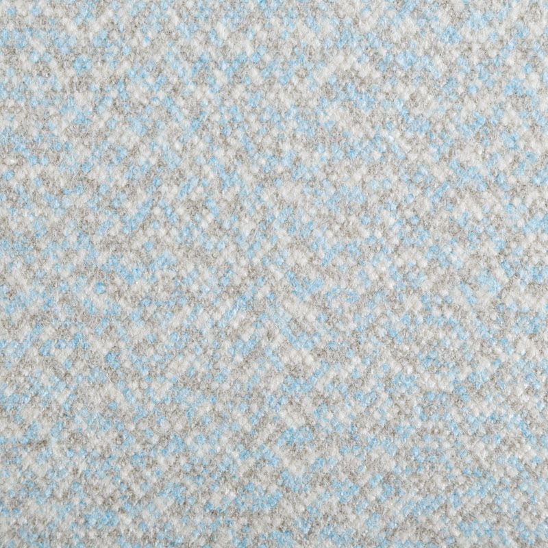 Плотный двухслойный пальтовый трикотаж белого цвета с абстрактным орнаментом в серо-голубой гамме. Ткань очень приятная на ощупь, пластичная, теплая и уютная, поверхность слегка буклированная и мягкая. Изнанка однотонная молочного оттенка. Прекрасно подойдет для  пошива пальто, теплых жакетов, курток, кардиганов, костюмов.