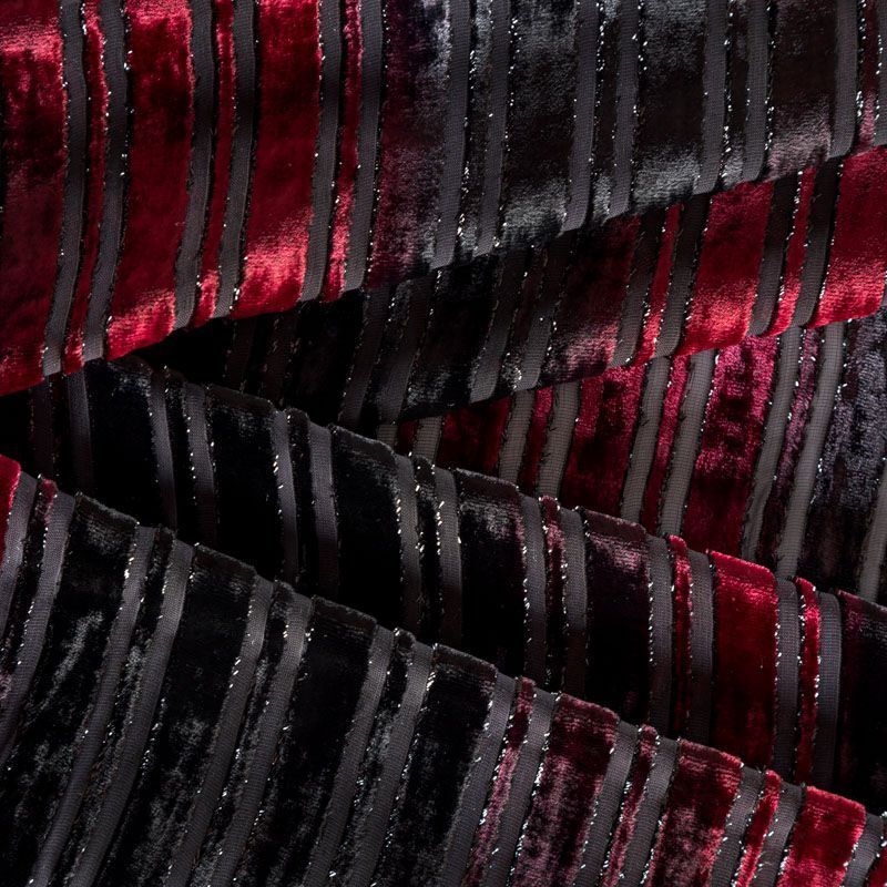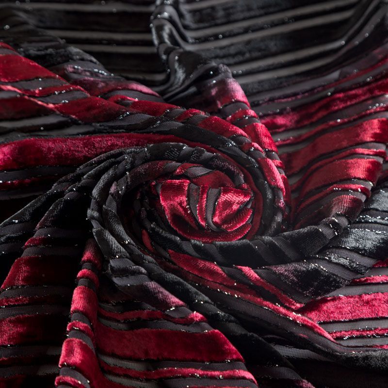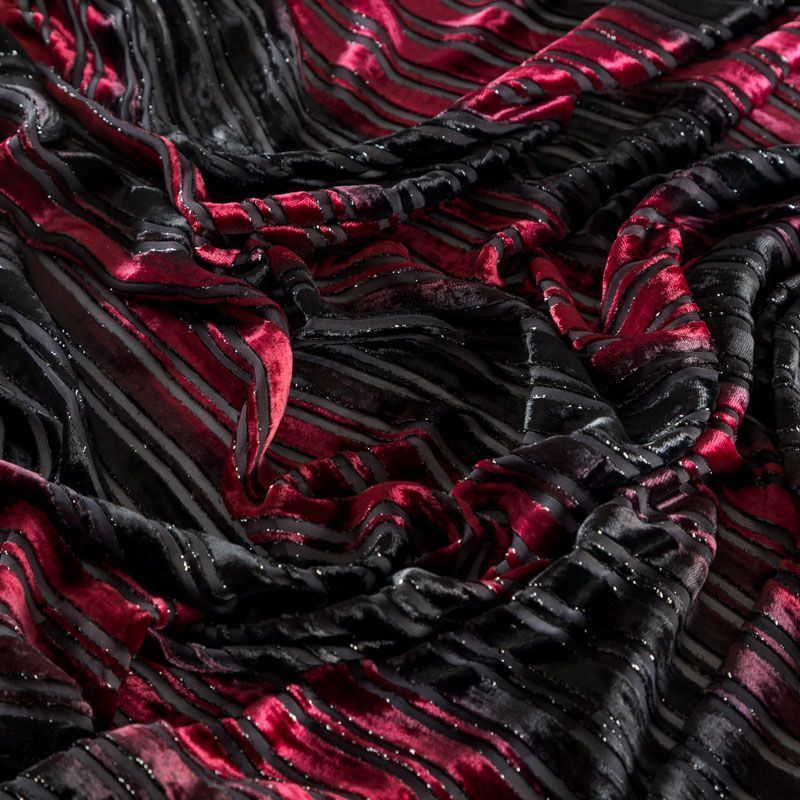 Итальянская шелковая красивая и эффектная ткань с гладким, немного глянцевым ворсовым узором на матовой шифоновой основе черного цвета. Панбархат тонкий, но объемный за счет рельефности рисунка, при драпировке ложится мягкими струящимися складками. Отлично подойдет для пошива блузы, туники, платья, костюма в пижамном стиле.