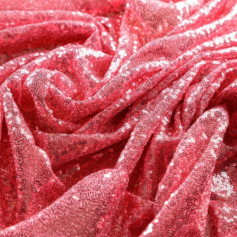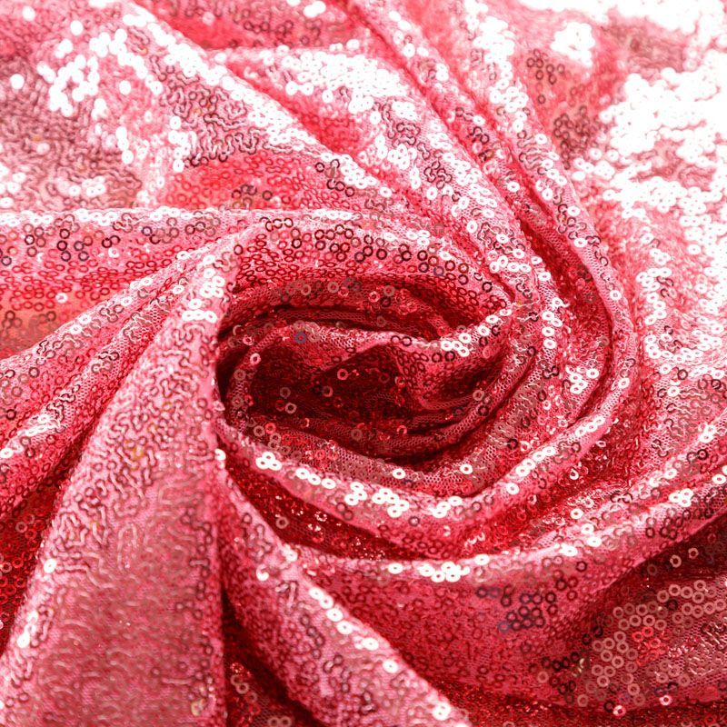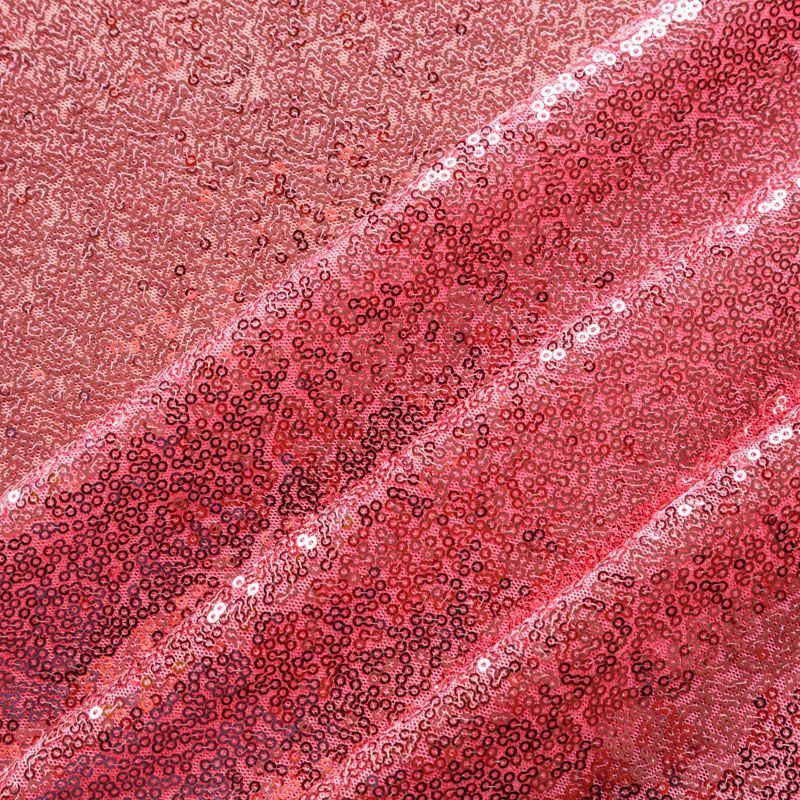 Блестящие пайетки в коралловом оттенке. Мелкие, размером около 3 мм, расположены в хаотичном порядке. Основа - мягкая и эластичная сетка.  Ткань полупрозрачная, может потребоваться подклад. Подойдет для вечернего, коктейльного платья, юбки, нарядных детских изделий, танцевальных и сценических костюмов.