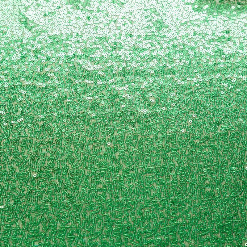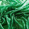 Блестящие пайетки в зеленом оттенке. Мелкие, размером около 3 мм, расположены в хаотичном порядке. Основа - мягкая и эластичная сетка. Ткань полупрозрачная, может потребоваться подклад. Подойдет для вечернего, коктейльного платья, юбки, нарядных детских изделий, танцевальных и сценических костюмов.