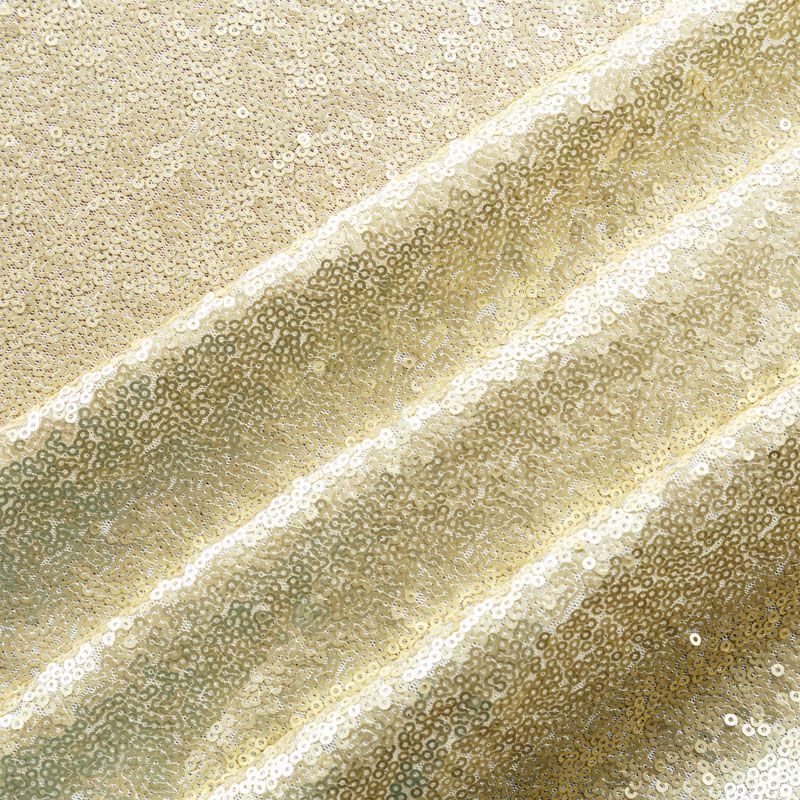 Блестящие пайетки в золотистом оттенке. Мелкие, размером около 3 мм, расположены в хаотичном порядке. Основа - мягкая и эластичная сетка.  Ткань полупрозрачная, может потребоваться подклад. Подойдет для вечернего, коктейльного платья, юбки, нарядных детских изделий, танцевальных и сценических костюмов.