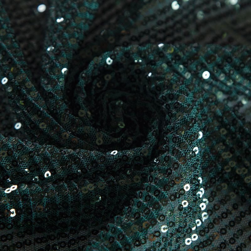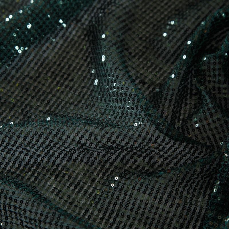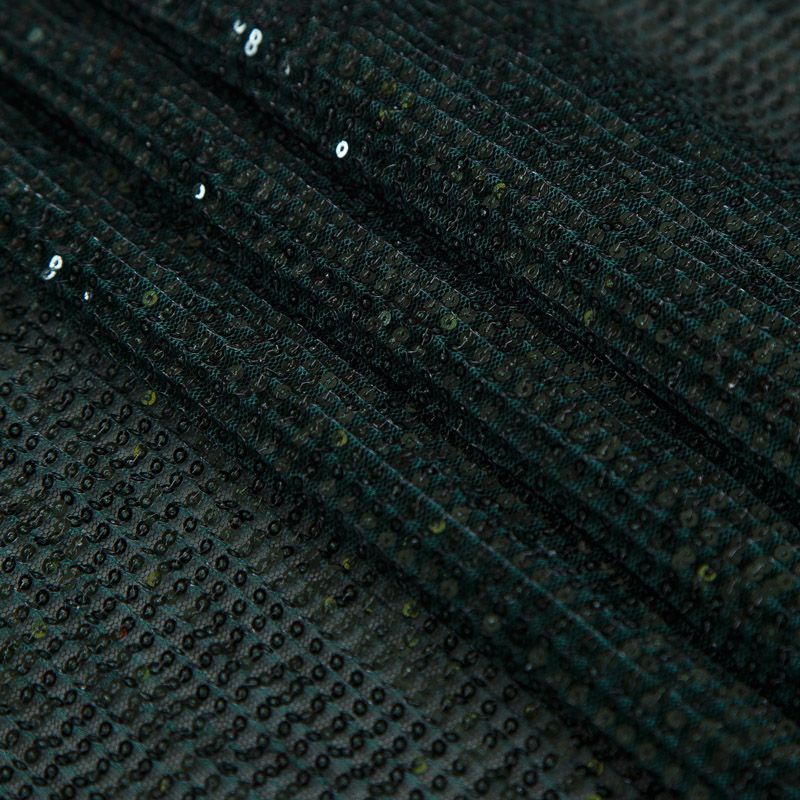 Пайетки на сетке плиссе 055-16382 бутылочный зеленый