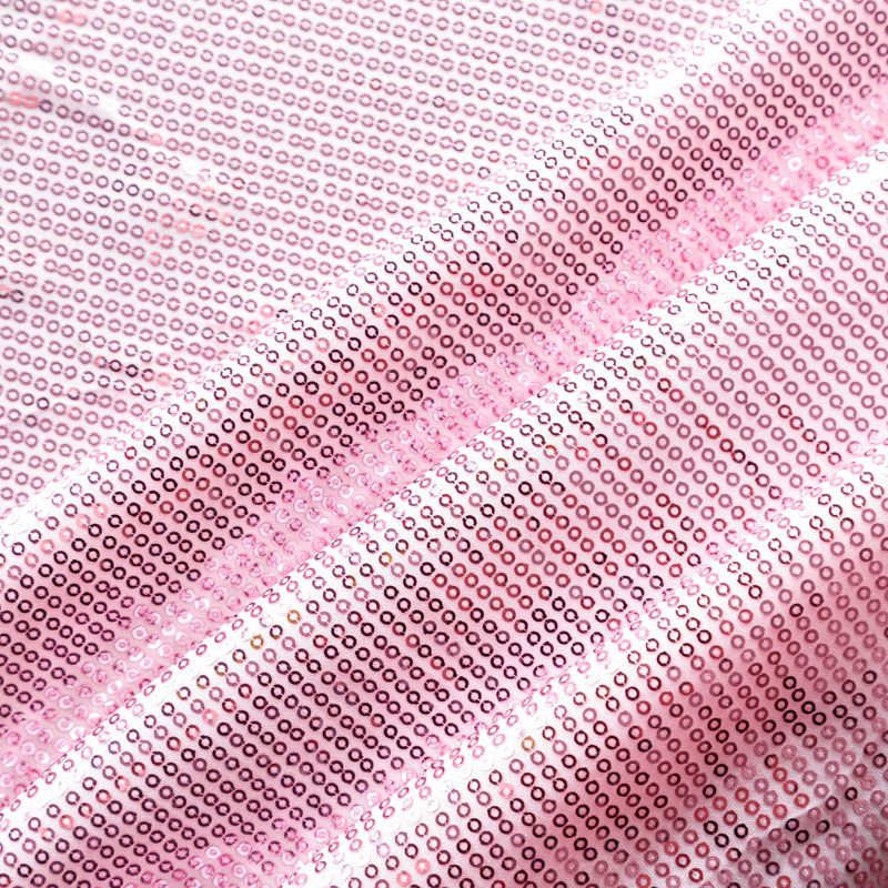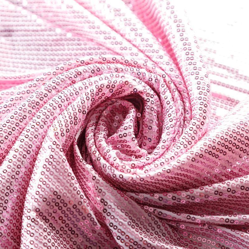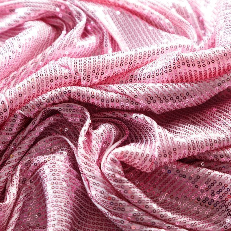 Блестящие пайетки в розовом оттенке. Мелкие, размером около 3 мм, расположены в хаотичном порядке. Основа - мягкая и эластичная сетка.  Ткань полупрозрачная, может потребоваться подклад. Подойдет для вечернего, коктейльного платья, юбки, нарядных детских изделий, танцевальных и сценических костюмов.
