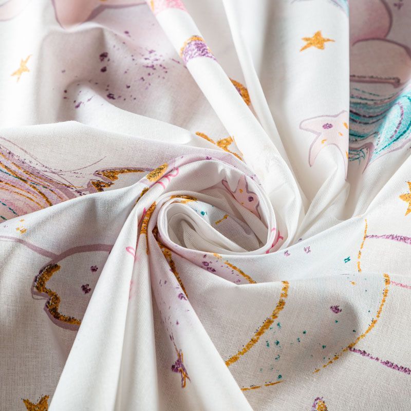 Тонкая, плотная хлобчатобумажная ткань полотняного переплетения. При изготовлении используются длинноволокнистые сорта хлопка, за счет чего перкаль имеет длительный срок использования и прекрасно стирается. Поверхность шелковистая, мягкая, нежная и гладкая на ощупь. Подойдет для пошива домашней одежды, постельного и столового белья, детских пеленок, бортиков для кроватки.