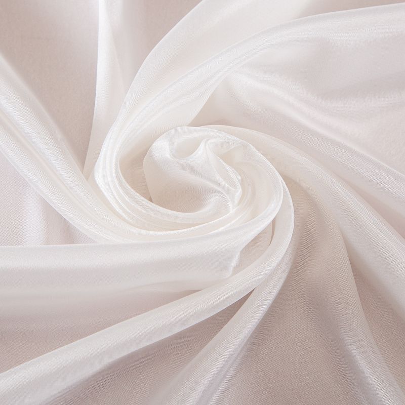Перламутровый шифон — это разновидность шифона, отличающийся атласным, переливающимся блеском. Ткань легкая, струящаяся, не просвечивает, хорошо драпируется. Применяется в пошиве вечерних и свадебных платьев, блузок, юбое, сценических костюмов, одежды для спортивных бальных танцев, детских вещей, а также платков, шалей и прочих аксессуаров.