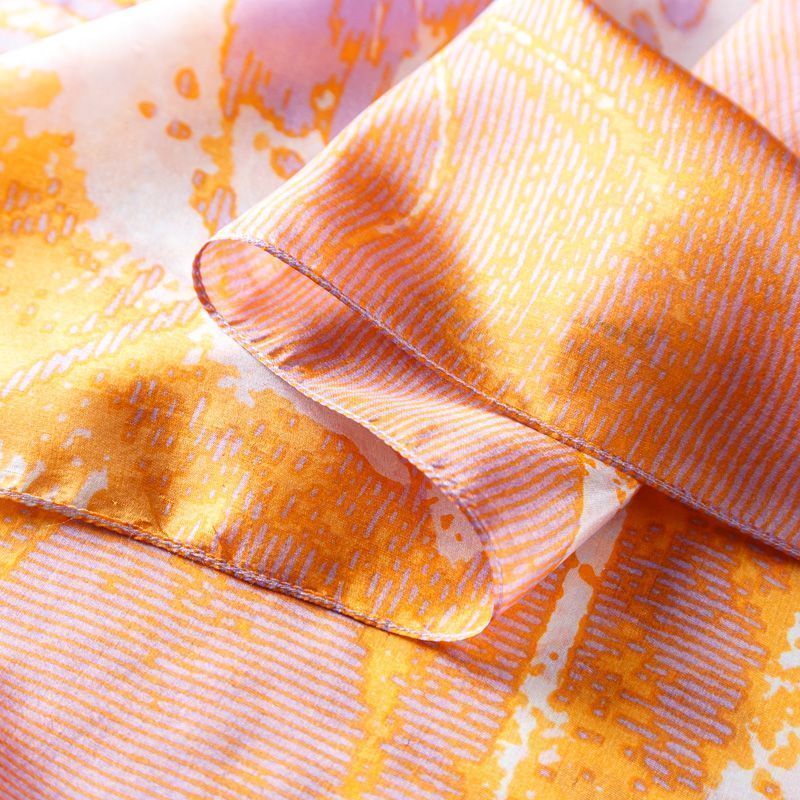 Изящный, нежный и необыкновенный шарф из итальянского шелкового шифона с крупным анималистичным принтом "зебра" в ярких оранжевых и фиолетовых тонах на молочном фоне. Невесомый, воздушный, мягкий и пластичный, летящий, поверхность с красивым матовым блеском. Будет отличным стильным аксессуаром к платью, костюму, пальто, жакету.
