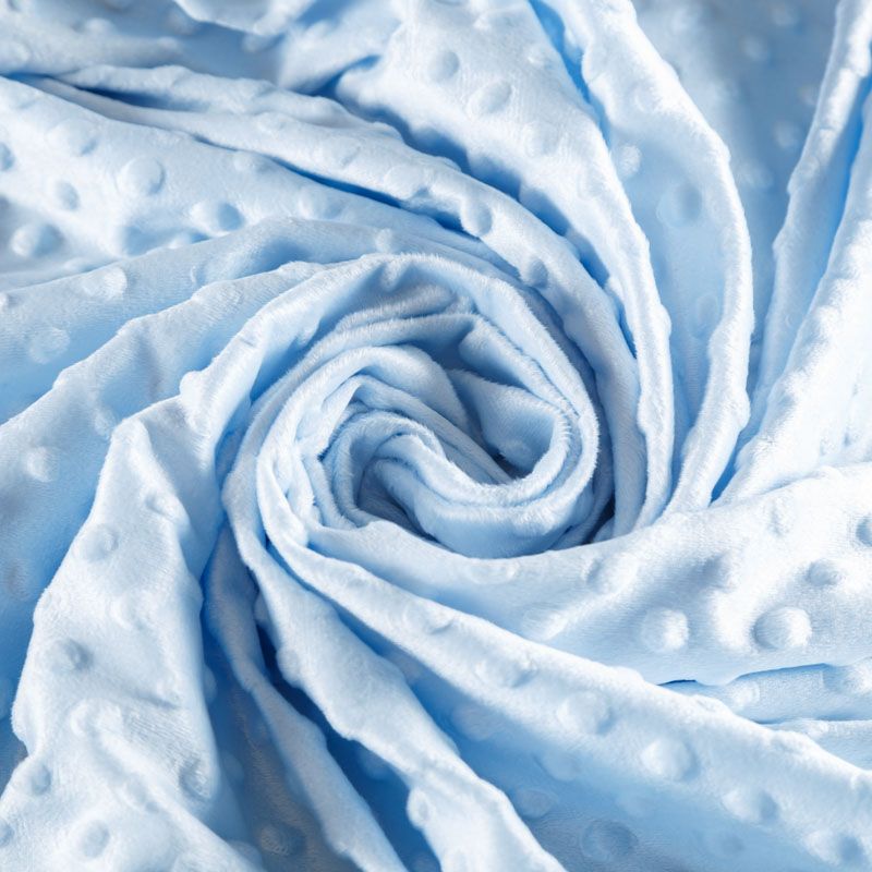 Мягкое, нежное, приятное на ощупь, с гладкой текстурой, красивым блестящим эффектом. Фактура – пузырьки. На лицевой стороне мягкий ворс 1 мм. Изнаночная сторона  — гладкое  трикотажное полотно без ворса. Используется  для пошива покрывал, пледов, одеял, бортиков в кроватку, конвертов для новорождённых, мягких игрушек, комбинезонов, пижам, домашней одежды, лежанок для домашних питомцев.